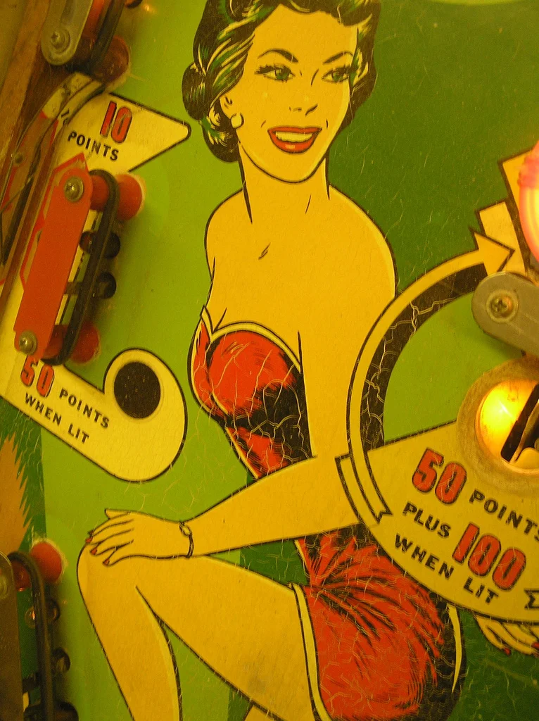 “The whole store was like a pinball machine and I didn’t know which tunnel they’d come out of.” The narrator, in his fascination, watches the girls move about the store like it’s a game. Their movements and actions serve only one purpose in his mind at the time: to entertain him and his libido. He sneers at the man behind the meat counter who was “looking after [the girls] sizing up their joints,” but then victimizes the girls, rather than realizing he propagates the meat counter attendant’s infatuation. “Poor kids, I began to feel sorry for them, they couldn’t help it.” Oh how I bristled to that! But comparing the girls to a pinball that was caught up in the machine simultaneously diminishes and augments the girls. It diminishes them because on one hand they are caught up in the cogs and workings of the game and have no control over where they’ll end up. On the other hand it augments them, because they are central to the game and where they go and what they do is of the utmost importance - to the point of being the utmost power, since what happens to them indicates the outcome of the game.
